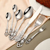 Elevate your dining experience with this Western Stainless Steel Dinnerware Set, perfect for steaks, pasta, and all Western dishes. Featuring a luxurious palace-inspired relief design, this cutlery set adds a touch of elegance and sophistication to any table, making it ideal for hotels, restaurants, and home dining alike.